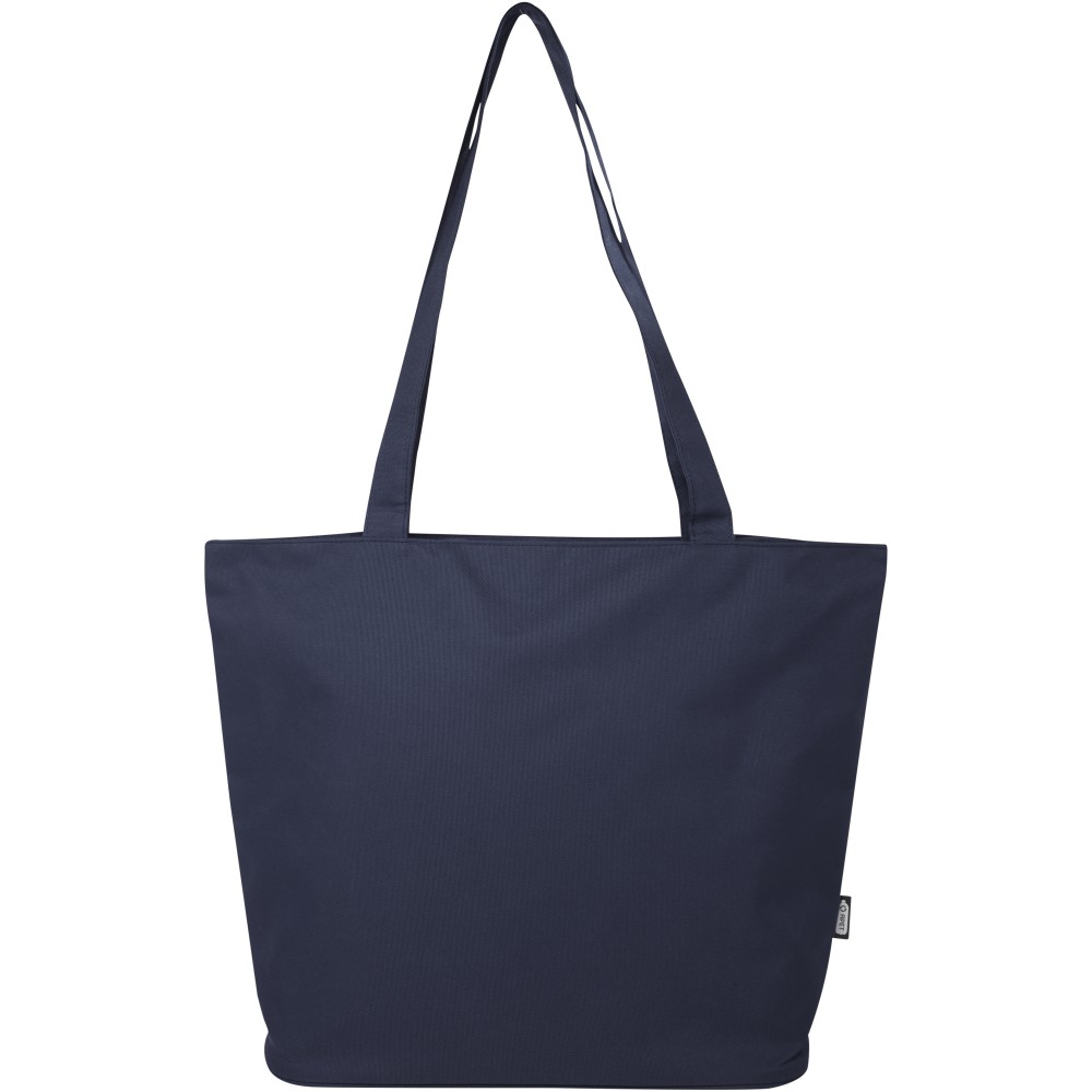 A vízlepergető 600D rPET anyagból készült Panama GRS újrahasznosított cipzáras táska tökéletes és fenntartható választás, ha rendezvényre, strandra vagy bevásárlásra készülsz. Egy cipzáras főrekesszel és egy cipzáras belső zsebbel rendelkezik, amely elég nagy a telefonod vagy más értékes holmi tárolására. Fülei 34 cm hosszúak, ezért a táska könnyen hordozható vállon. Teherbírás: 10 kg. PVC-mentes. Emblémázás: Szitanyomás