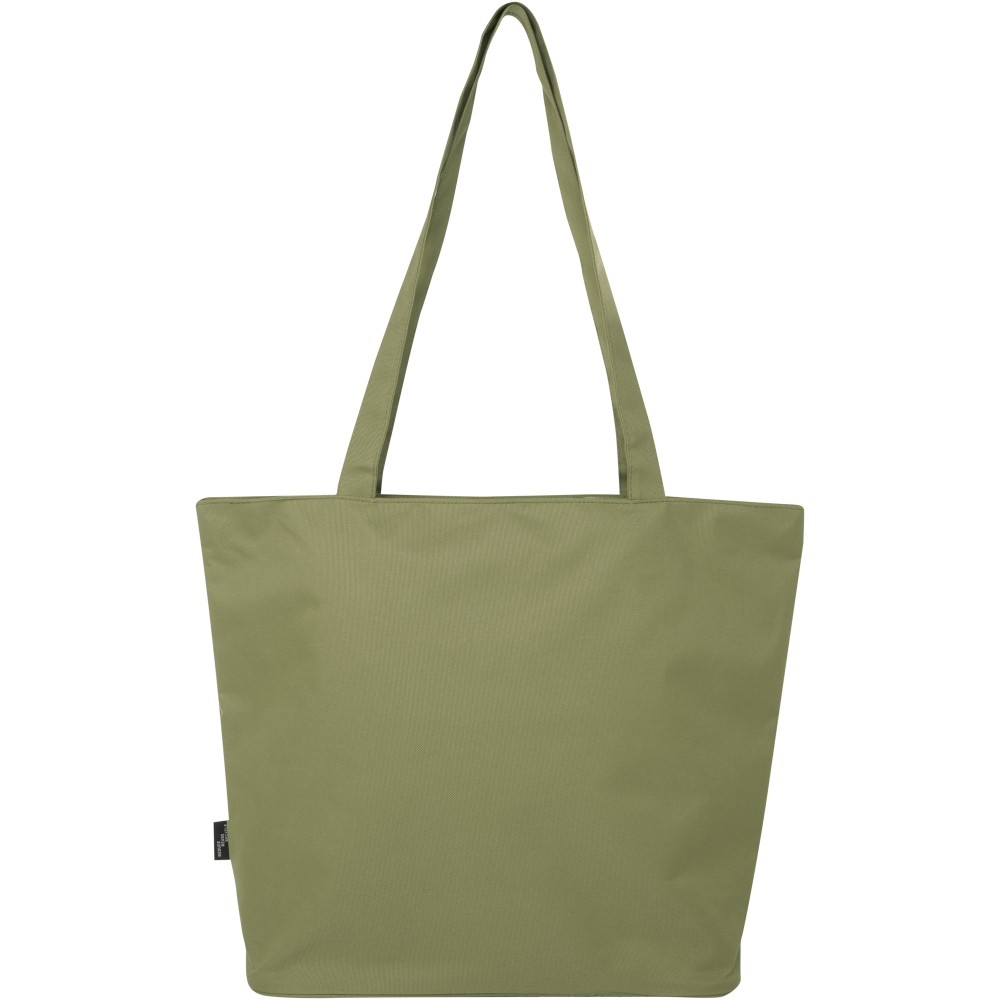A vízlepergető 600D rPET anyagból készült Panama GRS újrahasznosított cipzáras táska tökéletes és fenntartható választás, ha rendezvényre, strandra vagy bevásárlásra készülsz. Egy cipzáras főrekesszel és egy cipzáras belső zsebbel rendelkezik, amely elég nagy a telefonod vagy más értékes holmi tárolására. Fülei 34 cm hosszúak, ezért a táska könnyen hordozható vállon. Teherbírás: 10 kg. PVC-mentes. Emblémázás: Szitanyomás