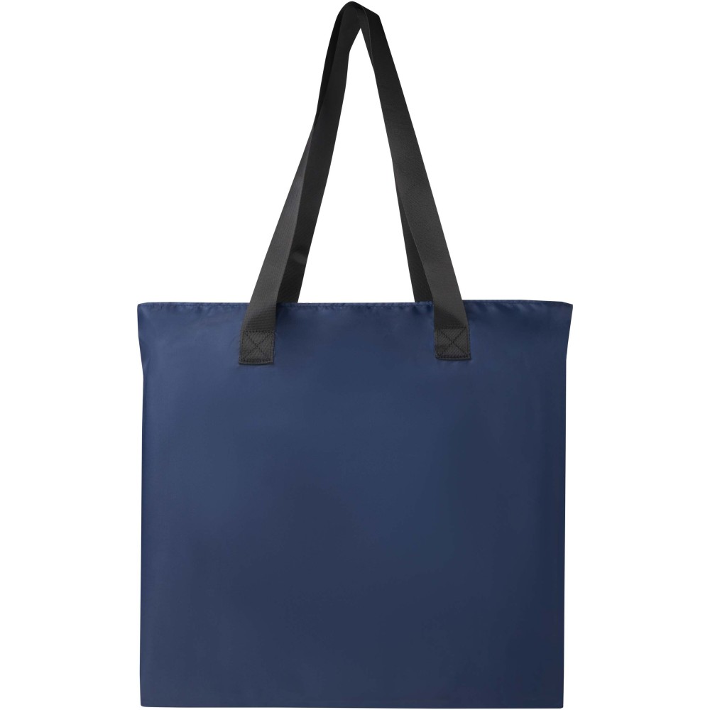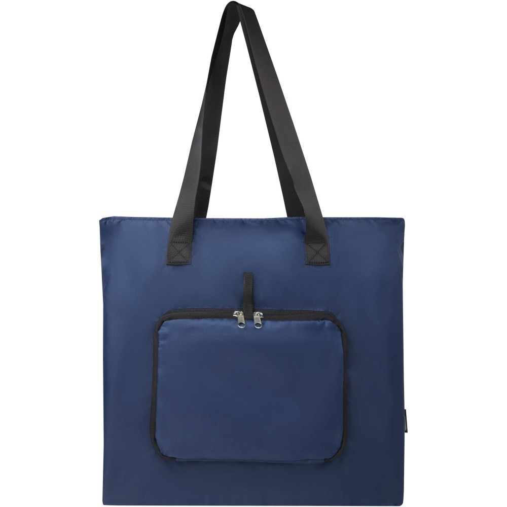Ez a könnyű, mégis tartós bevásárlótáska a kényelem és praktikusság jegyében készült. Könnyedén a kompakt tasakba hajtható, amelyen hurok található a kényelmes hordozás érdekében - tökéletes rohanós napokra, spontán bevásárlásokhoz vagy tartalék táskaként. Tágas cipzáras főrekesszel, cipzáras elülső zsebbel és két hosszú, sima szövött anyagból készült fogantyúval rendelkezik. PVC-mentes újrahasznosított poliészterből készült. Űrtartalma: 16 liter. Emblémázás: Szitanyomás