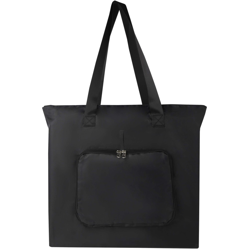 Ez a könnyű, mégis tartós bevásárlótáska a kényelem és praktikusság jegyében készült. Könnyedén a kompakt tasakba hajtható, amelyen hurok található a kényelmes hordozás érdekében - tökéletes rohanós napokra, spontán bevásárlásokhoz vagy tartalék táskaként. Tágas cipzáras főrekesszel, cipzáras elülső zsebbel és két hosszú, sima szövött anyagból készült fogantyúval rendelkezik. PVC-mentes újrahasznosított poliészterből készült. Űrtartalma: 16 liter. Emblémázás: Szitanyomás