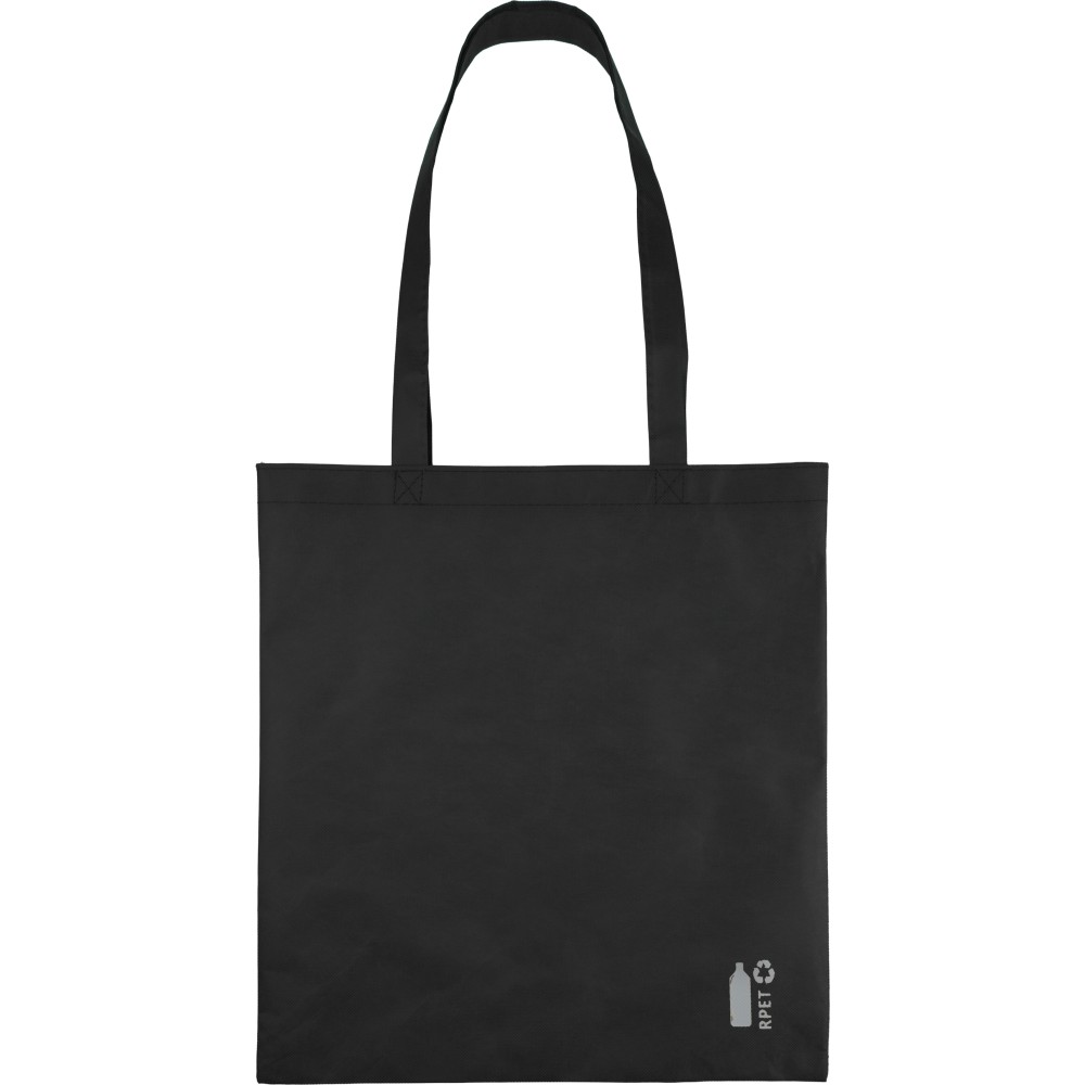 80 g/m2 újrahasznosított nemszőtt PP anyagból készült bevásárlótáska X-öltésekkel rögzített fülekkel. Kapacitása 11 liter, teherbíró képessége 7 kg. Emblémázás: Szitanyomás