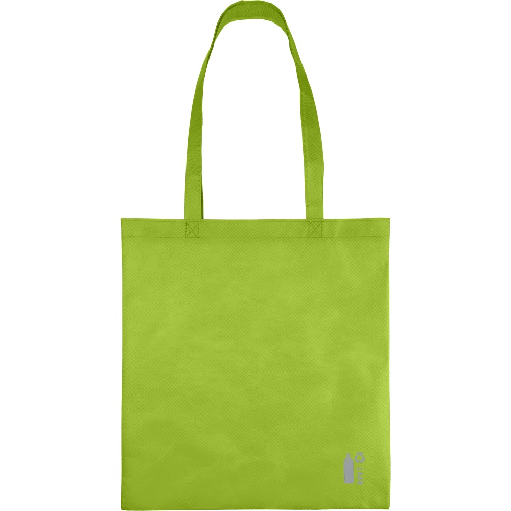 80 g/m2 újrahasznosított nemszőtt PP anyagból készült bevásárlótáska X-öltésekkel rögzített fülekkel. Kapacitása 11 liter, teherbíró képessége 7 kg. Emblémázás: Szitanyomás