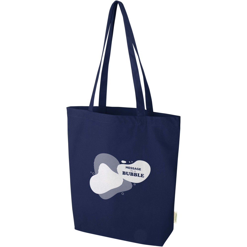 OCS tanúsítvánnyal rendelkező, 100% organikus pamutból készült Odisha bevásárlótáska környezetbarát és megbízható megoldást kínál. A táska a széles talpkialakításnak köszönhetően extra tárolóhelyet biztosít, hosszú fülei pedig kényelmes hordozhatóságot tesznek lehetővé a mindennapok során. A táska teherbírása 5 kg. Űrtartalma: 11 liter. 180 g/m2 anyag. Emblémázás: Szitanyomás