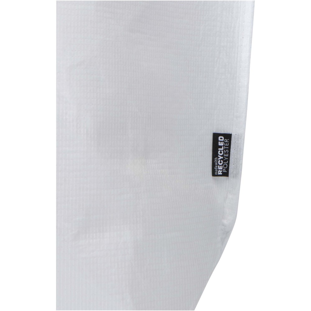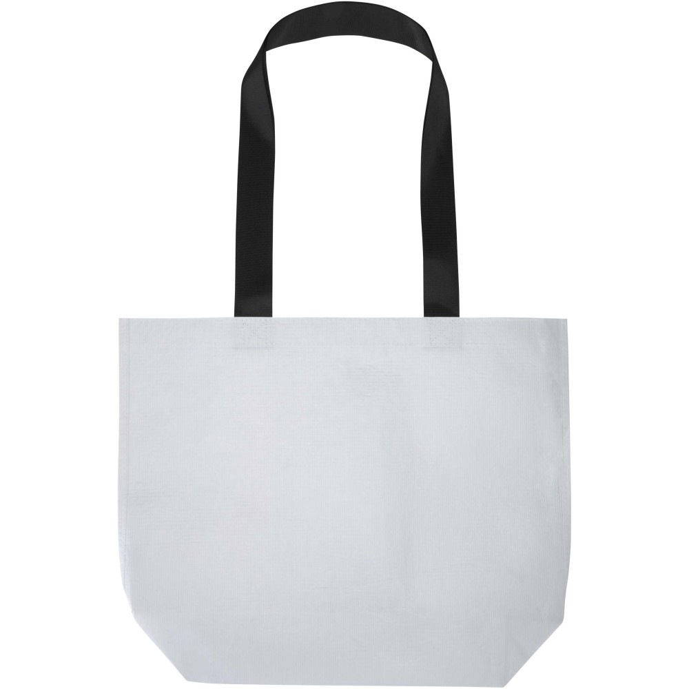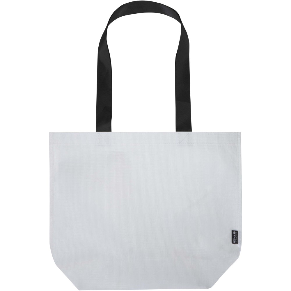 Duplán laminált aljú bevásárlótáska 150 g/m2 súlyú, GRS tanúsítvánnyal rendelkező, újrahasznosított RPET anyagból készül. A dupla laminálásnak köszönhetően a táska fokozott tartóssággal és vízlepergető tulajdonságokkal rendelkezik, így megbízható megoldást nyújt a mindennapi használat során. A termék tágas, nyitott főrekesszel, megerősített hordfülekkel és extra kapacitást biztosító széles alsó résszel rendelkezik. A 18 literes űrtartalmú táska teherbírása 10 kg, így esztétikus és praktikus választás bevásárláshoz, szakvásárokra vagy reprezentatív céges eseményekre. Az újrahasznosított alapanyag révén kiválóan alkalmas öko-szemléletű emblémázott ajándéknak. Emblémázás: Szitanyomás