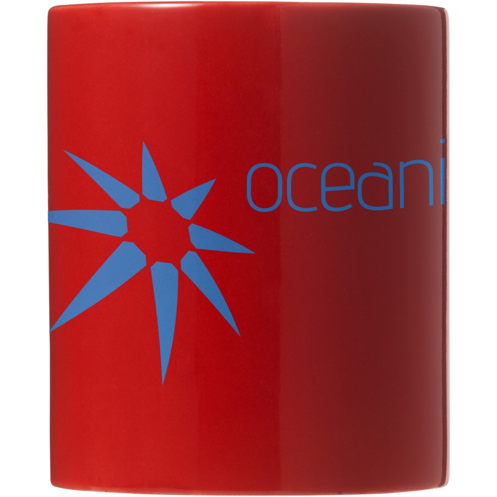 Klasszikus 330 ml-es kerámia bögre. Nem szivárgásmentes. Szénsavas italokkal is használható. Mosogatógépben mosható és mikrohullámú sütőben történő melegítésre alkalmas. Fehér kartondobozban szállítjuk. Emblémázás: Bögredekor