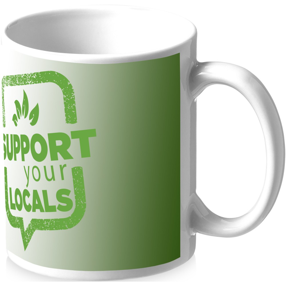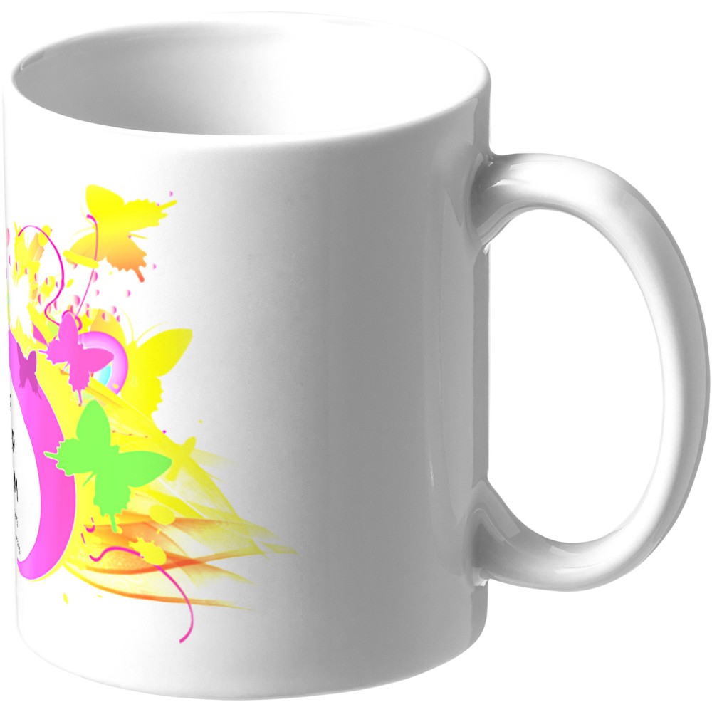 Hagyományos stílusú kerámia bögre 330 ml űrtartalommal. Csak szublimációs technikával emblémázható. Nem szivárgásmentes. Szénsavas italokkal is használható. Mosogatógépben mosható és mikrohullámú sütőben történő melegítésre alkalmas. Fehér kartondobozban szállítjuk egyesével csomagolva. Emblémázás: Szublimálás