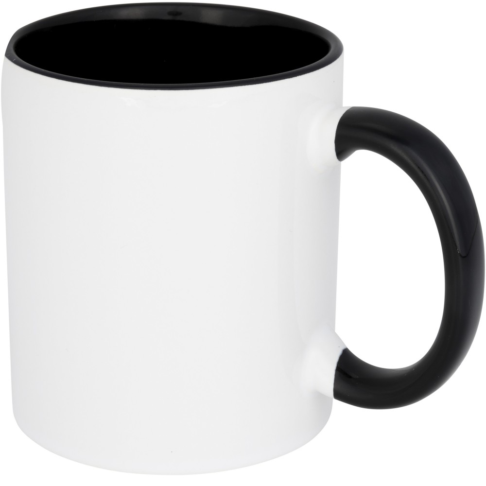 Klasszikus stílusú szublimálható kerámia bögre. Illeszkedő színű belső felülettel és füllel rendelkezik. Nem szivárgásmentes. Szénsavas italokkal is használható. Mosogatógépben mosható és mikrohullámú sütőben történő melegítésre alkalmas. Űrtartalom: 330 ml. Csomagolása fehér kartondoboz. Emblémázás: Szublimálás