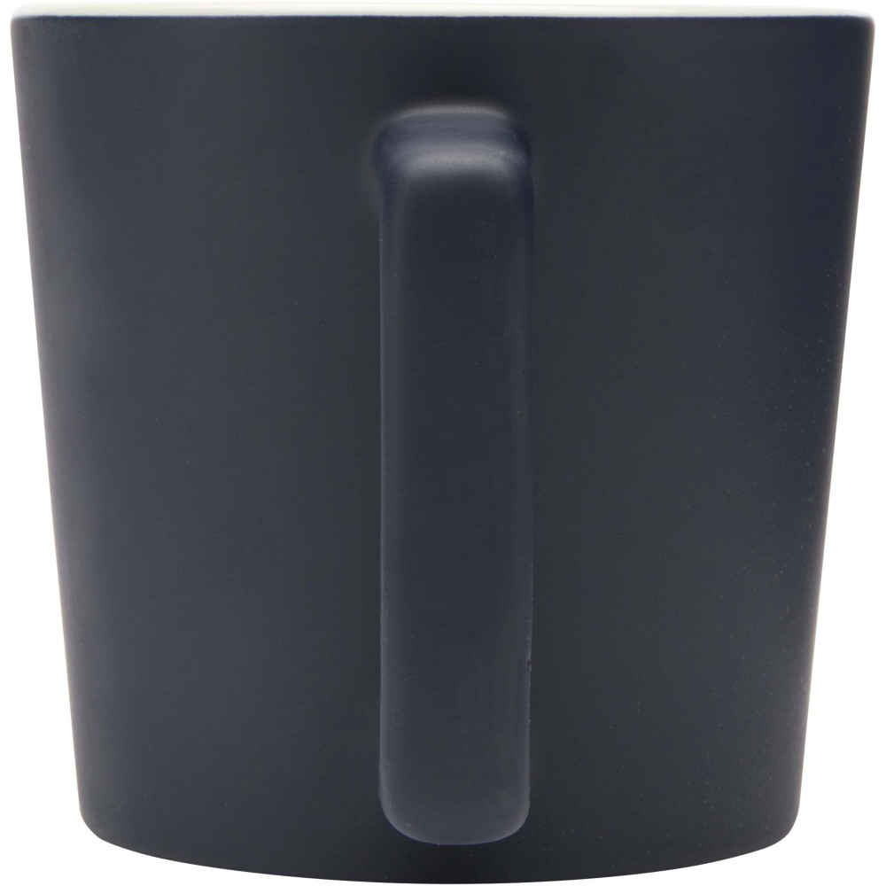 Kerámia bögre modern dizájnnal és matt felülettel. Nem szivárgásmentes. Szénsavas italokkal is használható. Mosogatógépben mosható és mikrohullámú sütőben történő melegítésre alkalmas. Űrtartalom: 370 ml. Újrahasznosított karton díszdobozban. Emblémázás: Bögredekor, Matricázás