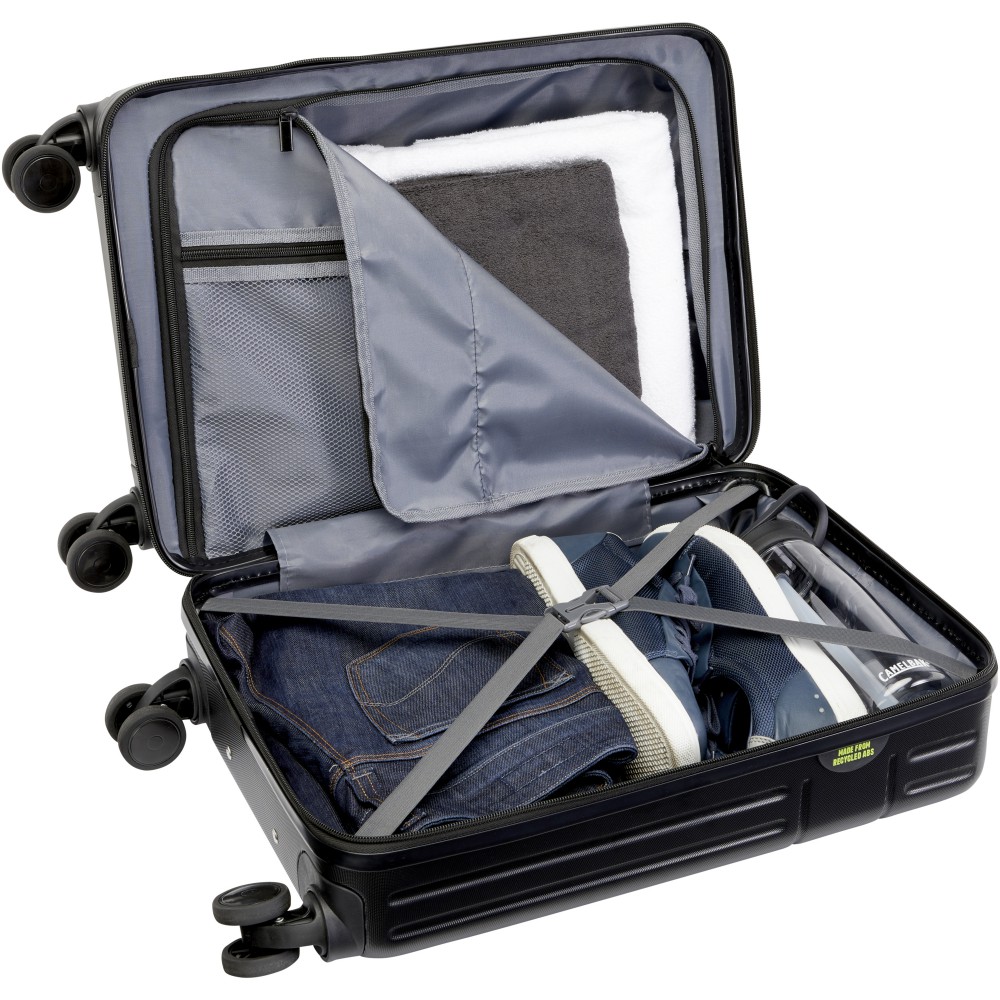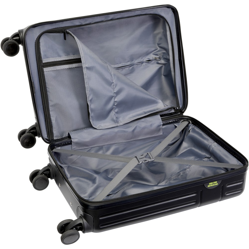 Ütésálló újrahasznosított műanyagból, RPET béléssel készült 20?-os Rover kabinbőrönd a fenntarthatóságot éppúgy képviseli, mint a minőséget. Duplacsöves alumínium vázzal, 360 fokos kerekekkel, integrált TSA zárral, kényelmes fogantyúval és belső elválasztó rekeszekkel rendelkezik. A legtöbb légitársaságnál kézipoggyászként szállítható. A bőrönd GRS-tanúsítvánnyal rendelkezik. Újrahasznosított ABS. Emblémázás: Gravírozás