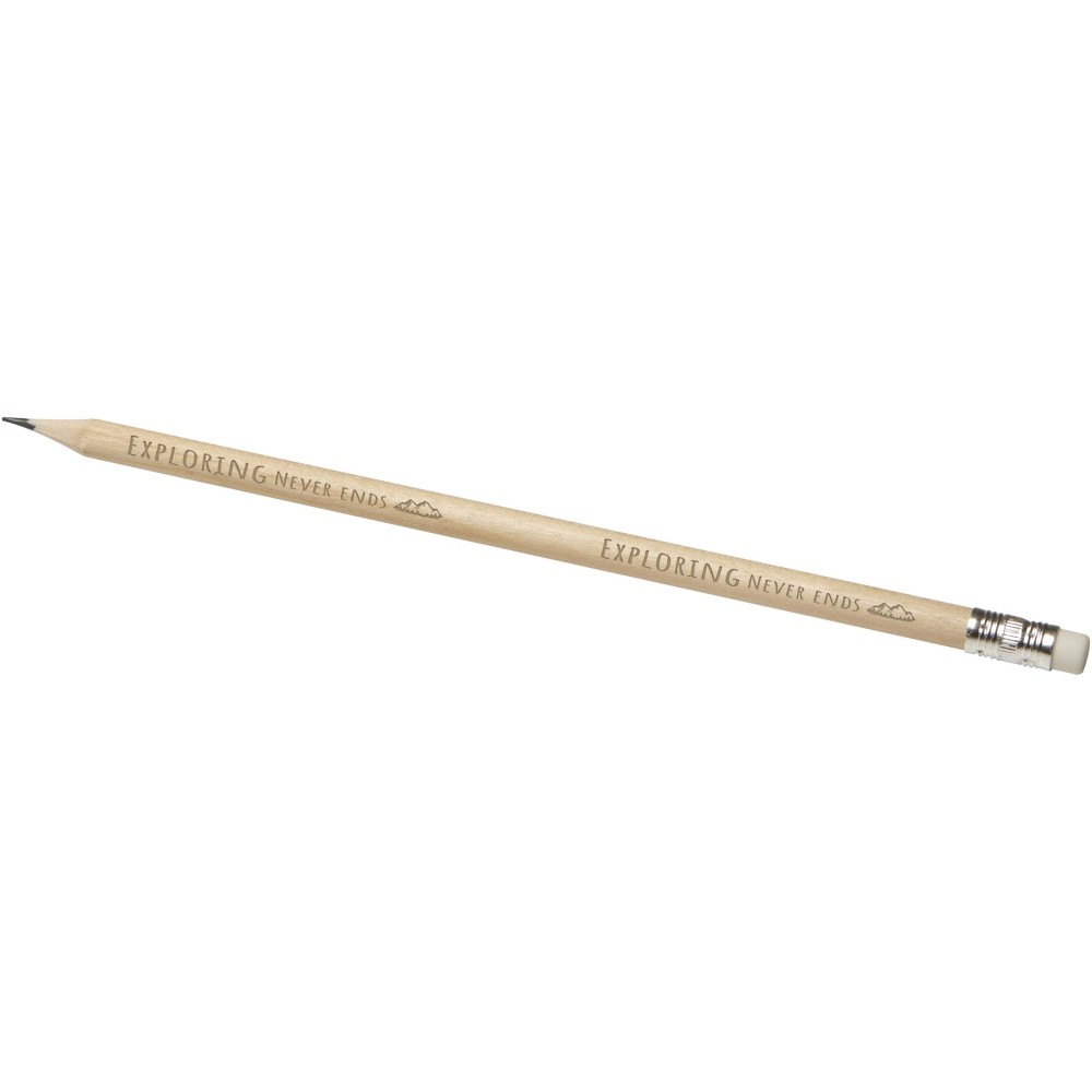 Ceruza radírral. A ceruza nyárfából készült, a radír grafitból, a foglalat pedig alumíniumból. Emblémázás: Gravírozás, Tamponnyomás