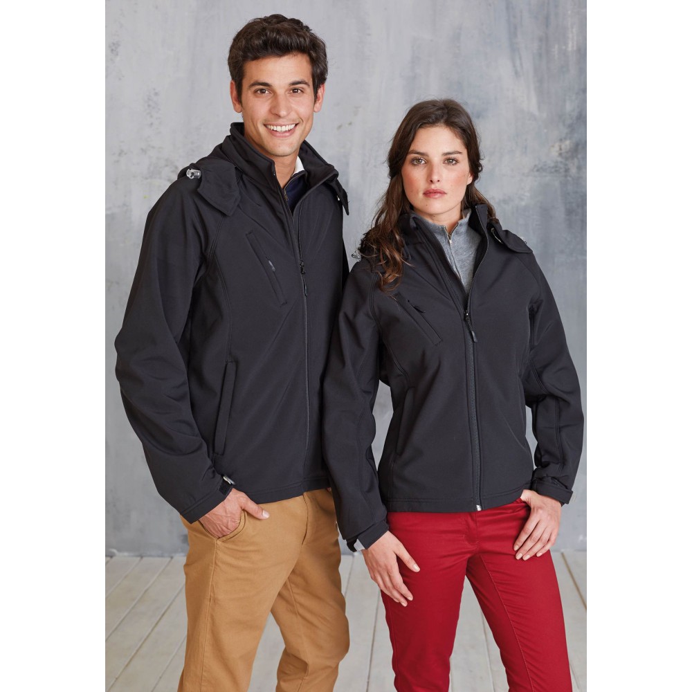 3 rétegű préselt anyag. 1000 g/m2/ 24 órás lélegző és 5000 mm vízálló funkció. Külső réteg 94% poliészter és 6% elasztán. A középső réteg vízálló membrán, Bolyhosodásmentes mikropolár belső réteg. Két cipzáras oldalzseb és egy mellzseb, levehető kapucni, húzózsinór a kapucniban és a derékrészen, tépőzáras, állítható kézelő, belső cipzár az emblémázás megkönnyítésére. 340 g/m2. S-3XL. Bizonyos színek 4XL méretig kaphatóak. Emblémázás: Hímzés, Szitanyomás