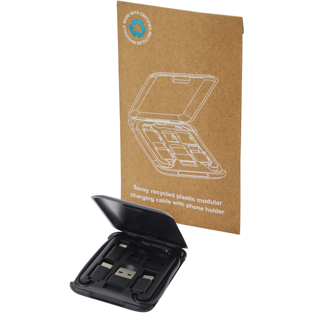 Savvy moduláris töltőkábel telefontartóval, fekete