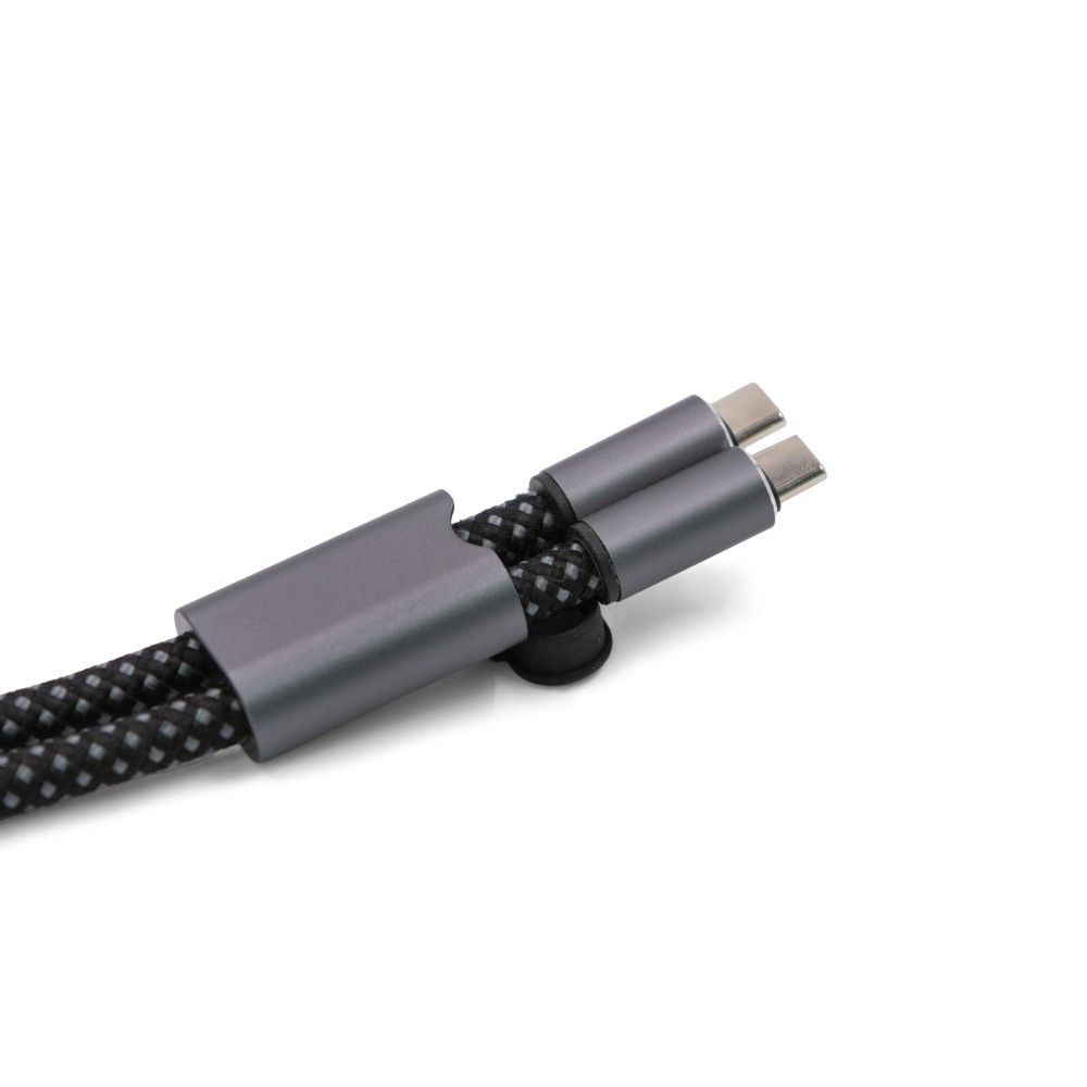 A Lany Wristband Charge töltőkábel praktikus céges ajándék. Újrahasznosított PET-palackokból készült, könnyű, tartós, állítható, és 8 kg-ig tesztelve. A legtöbb telefontokkal kompatibilis és töltésbarát. A C típusú bemenettel és USB Type-C kimenettel ellátott rPET-nylon fonott kábellel akár 60 W-os teljesítményt is támogat a gyors töltés és adatátvitel érdekében. A kompakt 22 cm-es kábel sokoldalúbbá teszi ezt az alapvető tartozékot. Emblémázás: Gravírozás