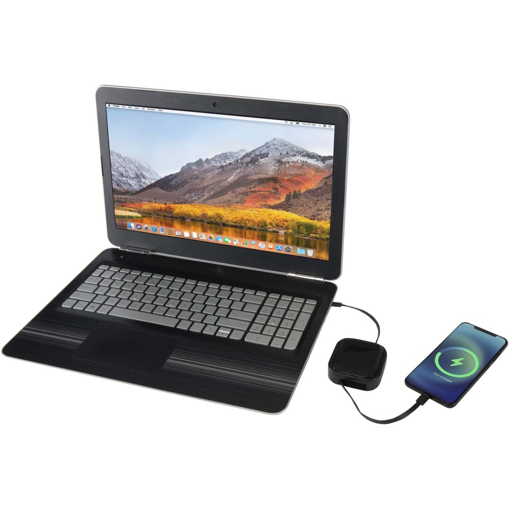 A Gloas egy mindent egyben töltő- és okostelefon-kiegészítő, amely újrahasznosított műanyagból készült. Visszahúzható, 100W teljesítményű USB-C gyorstöltő és adatátviteli kábellel rendelkezik, USB-A adapterrel, valamint 2 az 1-ben microUSB/Lightning adapterrel. Elég erős ahhoz, hogy a legtöbb laptopot, tabletet és okostelefont gyorsan feltöltse, a kábel pedig kompatibilis a CarPlay és Android Auto rendszerekkel is. Belsejében SIM-kártya kiszedő tű, egy nano SIM és egy microSD kártya tárolóhely, valamint beépített telefontartó található, ami ideális videónézéshez vagy videóhívásokhoz. Minden, amire szükséged lehet, egy kompakt kialakításban. Emblémázás: Matricázás, Tamponnyomás