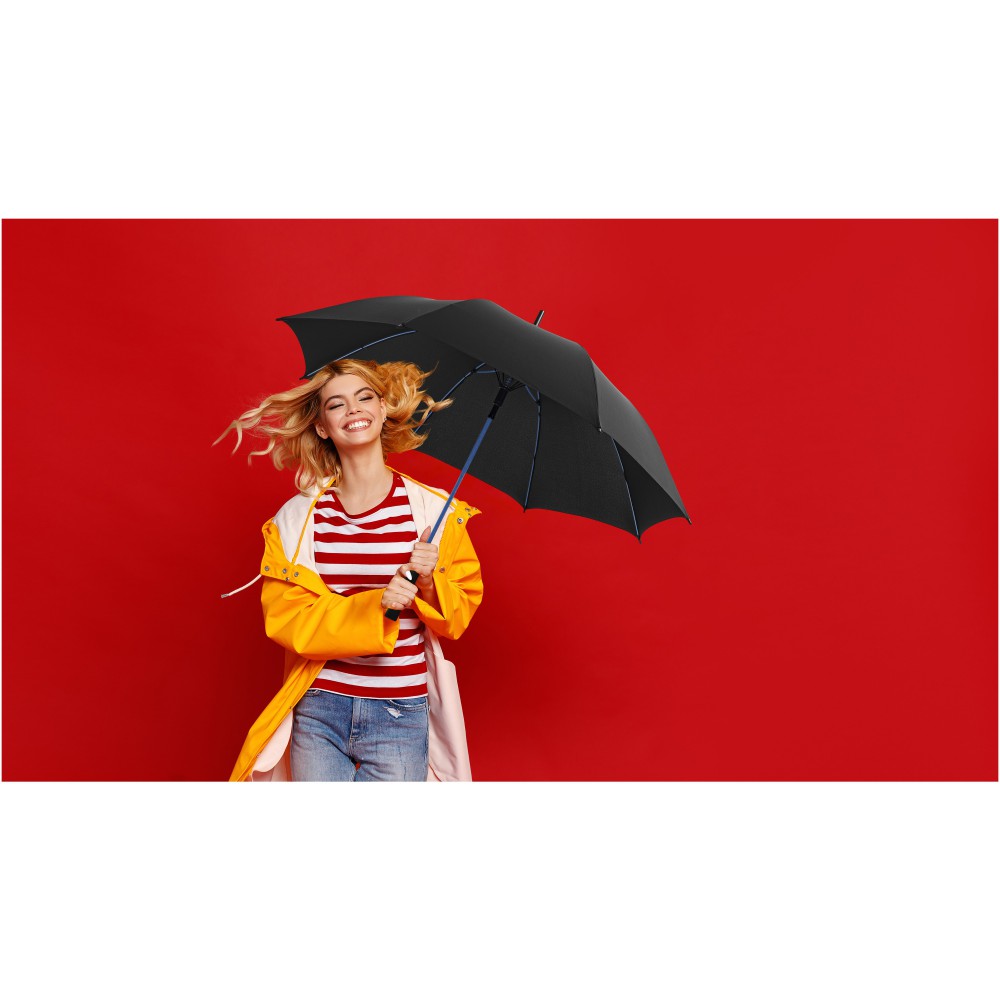 Automata 23 -es esernyő. Selyem ernyőrész, hozzá tartozó tokkal, színes üvegszálas nyél és üvegszálas bordák. Színes, hozzáillő varrat az esernyő zárószíján. Exkluzív kivitel. Emblémázás: Szitanyomás