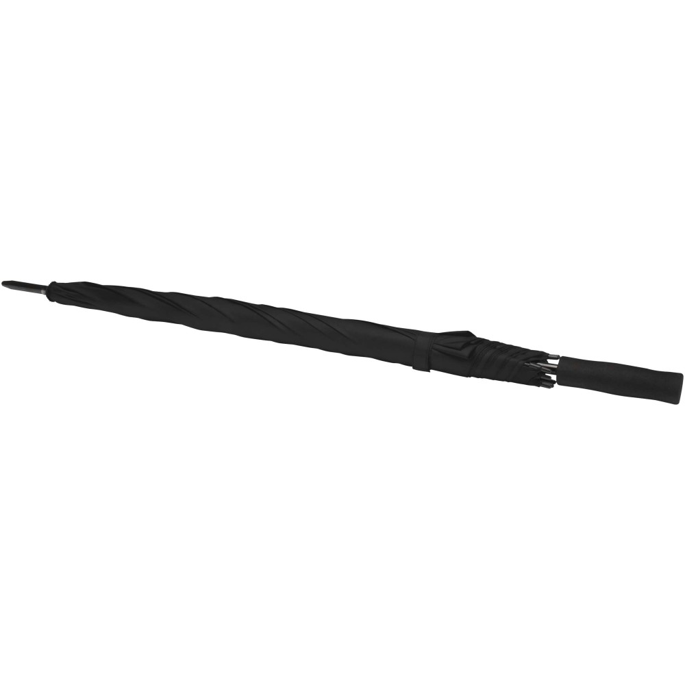 A 27 -os Ibi esernyő 190T RPET anyagból készült és 14,5 cm hosszú fekete műanyag fogantyúval rendelkezik, amely kényelmes fogást biztosít. A 14 mm-es fém váz stabilitást nyújt szeles időben is. Az Ibi esernyő praktikumot és modern megjelenést ötvöz, így megbízható társ a mindennapokban. Emblémázás: Szitanyomás
