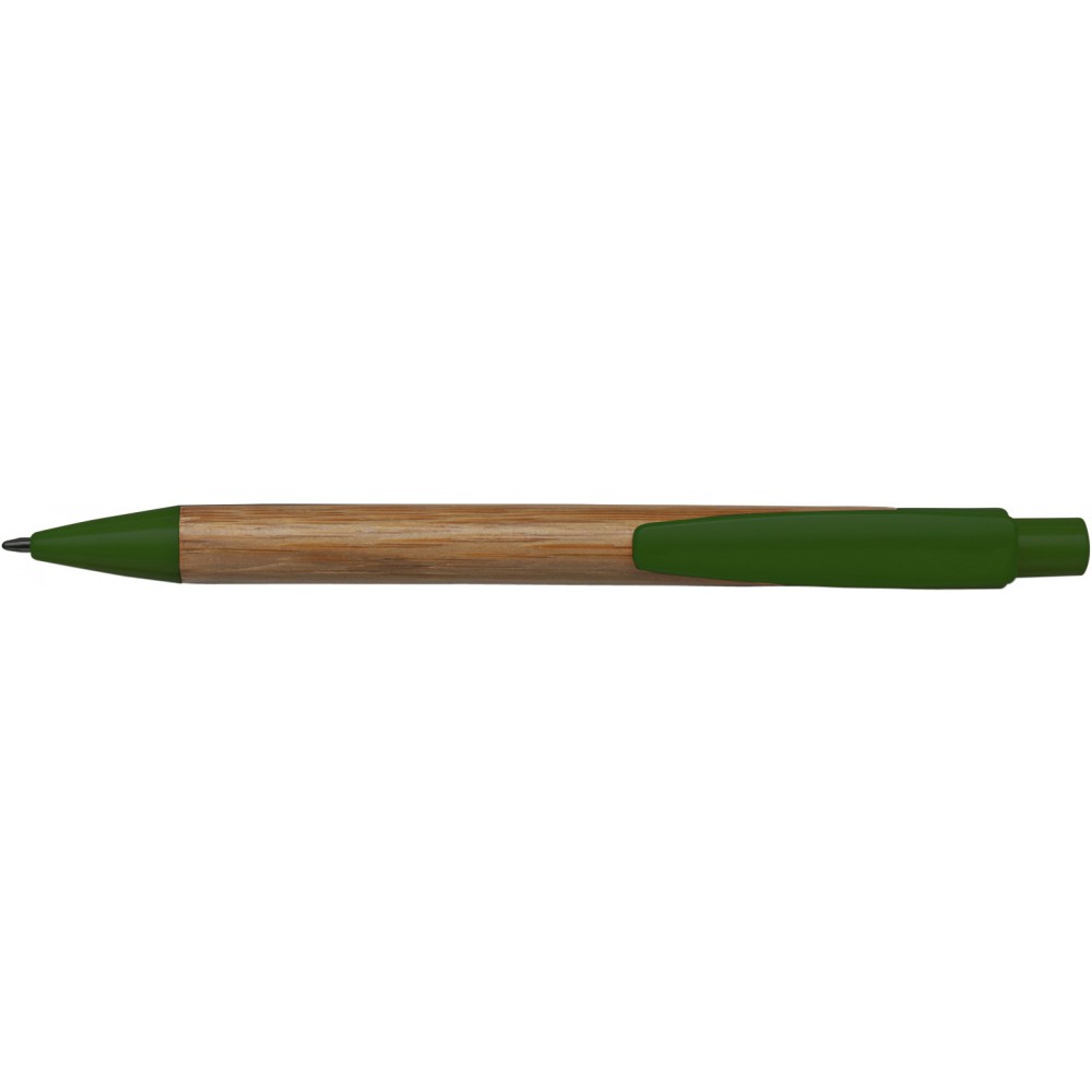 Bambusz golyóstoll műanyag kiegészítőkkel, kék tollbetéttel. Emblémázás: Gravírozás, Tamponnyomás, UV nyomtatás