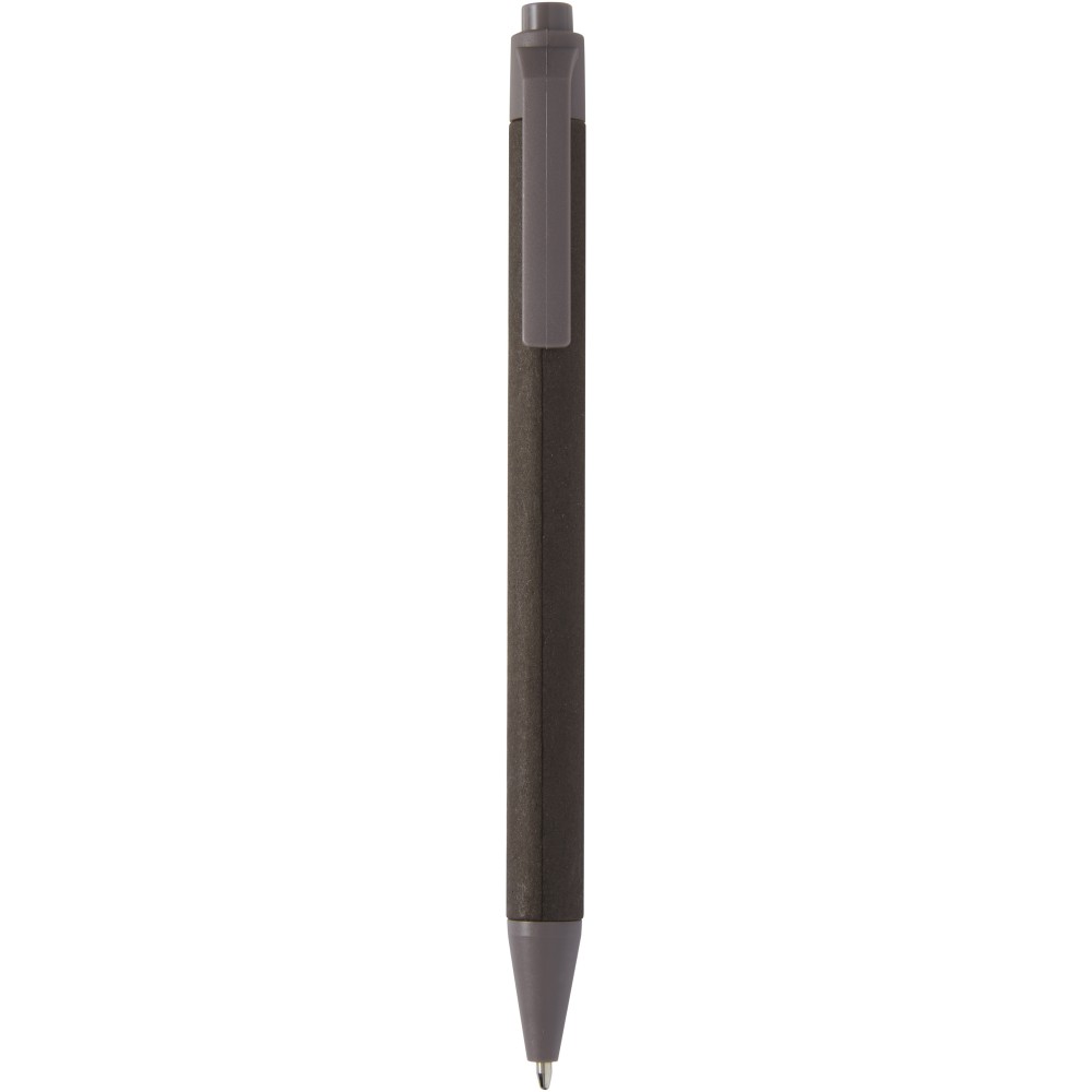 A toll teste felelősen beszerzett zúzott anyagokból készül. A barna papír a kávé, a zöld az olajbogyó, a fehér a kukorica maradványait tartalmazza. Az alja, a klip és a hegy PLA műanyagból készült. Fekete tollbetéttel. Íráskapacitás: 700 méter. Gyümölcspapír, PLA műanyag. Emblémázás: Tamponnyomás, UV nyomtatás