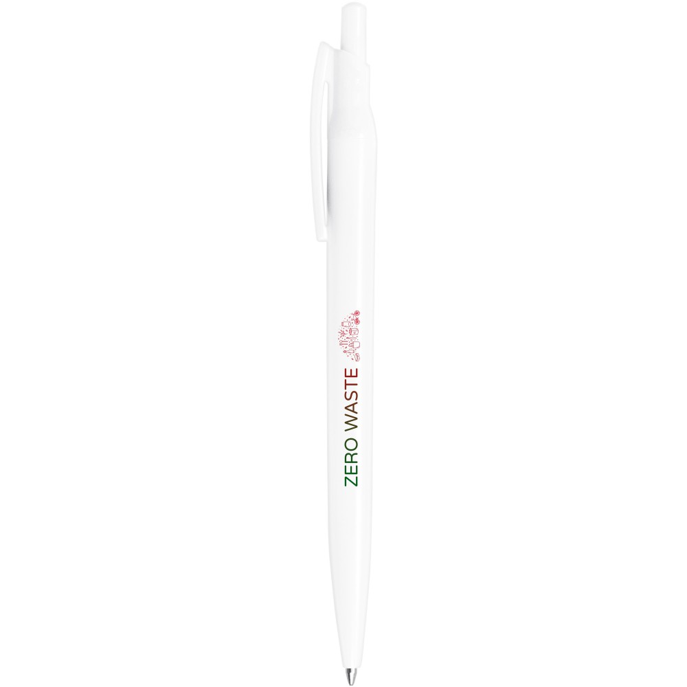 Nyomógombos golyóstoll újrahasznosított PET anyagból, tanúsítvánnyal. Egy palackból egy golyóstoll gyártható. Tartalmaz egy európai X20 cserélhető kék tollbetétet, íráshossza 2000 méter. Olaszországban készült. Újrahasznosított PET műanyag. Emblémázás: Tamponnyomás