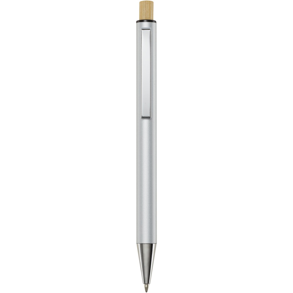 A Cyrus golyóstoll újrahasznosított alumíniumból készül, ami kevesebb energiát igényel, mint az alumínium nyersanyagból történő előállítása. Emellett csökkenti a hulladéklerakókba kerülő hulladék mennyiségét és hozzájárul a természeti erőforrások megőrzéséhez, amelynek célja az üvegházhatású gázok kibocsátásának csökkentése. A nyomógomb bambuszból készült. Tollbetét színe: fekete. Íráshossz: 800 méter. Tollhegy mérete: 1,00 mm. Emblémázás: Gravírozás