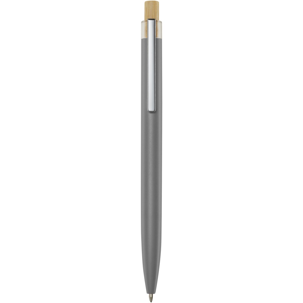 A Nooshin golyóstoll újrahasznosított alumíniumból készül, ami kevesebb energiát igényel, mint az alumínium nyersanyagból történő előállítása. Emellett csökkenti a hulladéklerakókba kerülő hulladék mennyiségét és hozzájárul a természeti erőforrások megőrzéséhez, amelynek célja az üvegházhatású gázok kibocsátásának csökkentése. A nyomógomb bambuszból készült. Tollbetét színe: fekete. Íráshossz: 800 méter. Tollhegy mérete: 1,00 mm. Emblémázás: Gravírozás