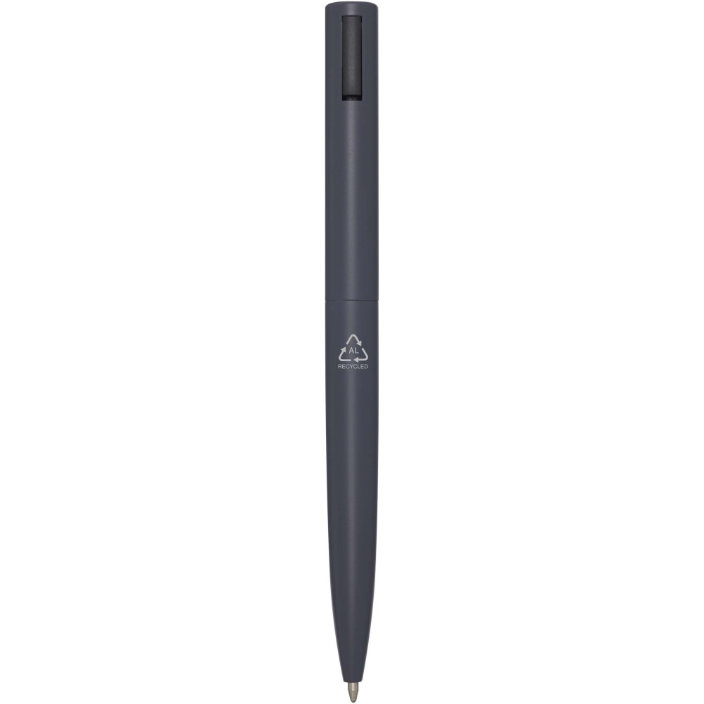 Golyóstoll, melynek felső teste újrahasznosított műanyagból, alsó része pedig újrahasznosított alumíniumból készült. A klipsz vasból készült. Kék tollbetéttel. Írási hossz: 1000 méter. Hegyméret: 1,0 mm. Emblémázás: Gravírozás