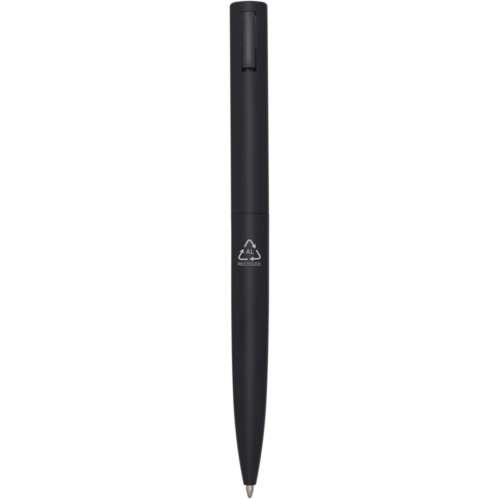 Golyóstoll, melynek felső teste újrahasznosított műanyagból, alsó része pedig újrahasznosított alumíniumból készült. A klipsz vasból készült. Kék tollbetéttel. Írási hossz: 1000 méter. Hegyméret: 1,0 mm. Emblémázás: Gravírozás