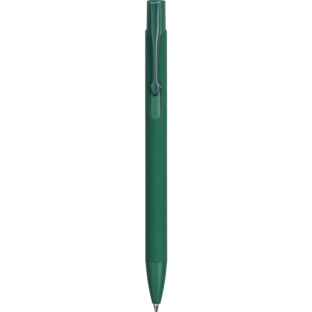 Újrahasznosított alumíniumból készült golyóstoll gumírozott bevonattal a tolltesten. A klipsz, a tollhegy és a nyomógomb azonos színű. A klipsz fémből, a tollhegy műanyagból készült. Kb. 800 méter íráshossz. Gravírozott újrahasznosított alumíniumra utaló logóval. Kék tollbetéttel. Emblémázás: Gravírozás, UV nyomtatás