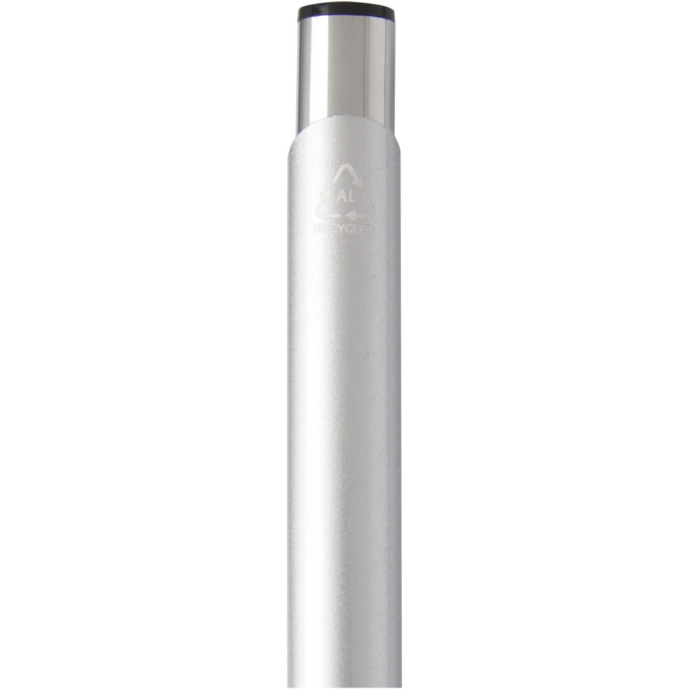 Golyóstoll újrahasznosított alumíniumból, lakkozott felülettel és króm részletekkel. Az újrahasznosított alumínium csökkenti a hulladéklerakók terhelését, segít megőrizni a természeti erőforrásokat és hozzájárul az üvegházhatású gázok kibocsátásának csökkentéséhez. Tinta színe: kék. Íráshossz: 1000 méter. Tollhegy mérete: 1,0 mm. Emblémázás: Gravírozás, Tamponnyomás