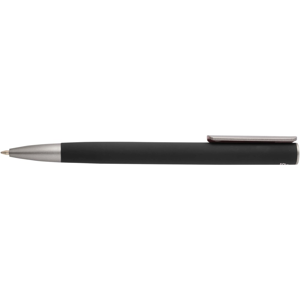 Golyóstoll újrahasznosított alumíniumból készült tolltesttel és ezüst bevonatú ABS műanyag klipsszel. Az újrahasznosított alumínium csökkenti a hulladék mennyiségét a lerakókban, hozzájárul a természeti erőforrások megőrzéséhez és a károsanyag-kibocsátás mérsékléséhez. Tinta színe: fekete. Íráshossz: 800 méter. Tollhegy mérete: 1,0 mm. Emblémázás: Gravírozás
