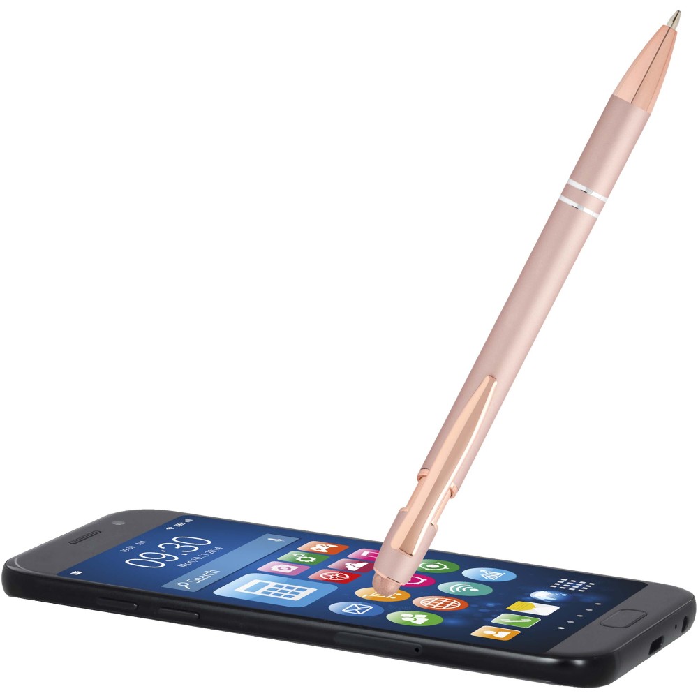 A Nanna golyóstoll rózsaarany bevonattal újrahasznosított alumíniumból készült tolltesttel és szilikon, érintőképernyős véggel rendelkezik. Az újrahasznosított alumínium csökkenti a hulladék mennyiségét a lerakókban, hozzájárul a természeti erőforrások megőrzéséhez és a károsanyag-kibocsátás mérsékléséhez. Tinta színe: fekete. Íráshossz: 800 méter. Tollhegy mérete: 1,0 mm. Emblémázás: Gravírozás, UV nyomtatás