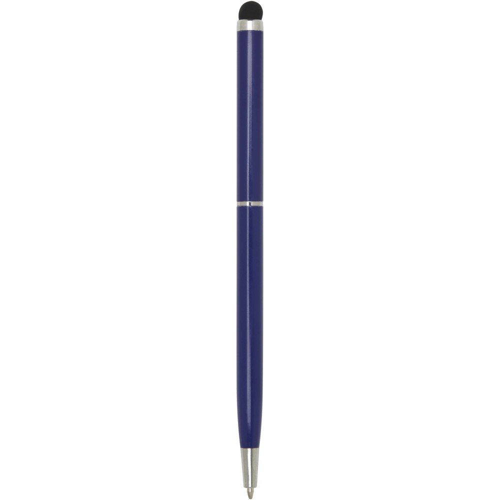 Ez a sokoldalú érintőceruzával ellátott golyóstoll tartós alumíniumból készült. A toll sima írást biztosít, míg a beépített érintőképernyős vég a pontos online navigációhoz ideális. Tinta színe: kék. Íráshossz: 1000 méter. Tollhegy mérete: 1,0 mm. Emblémázás: Gravírozás