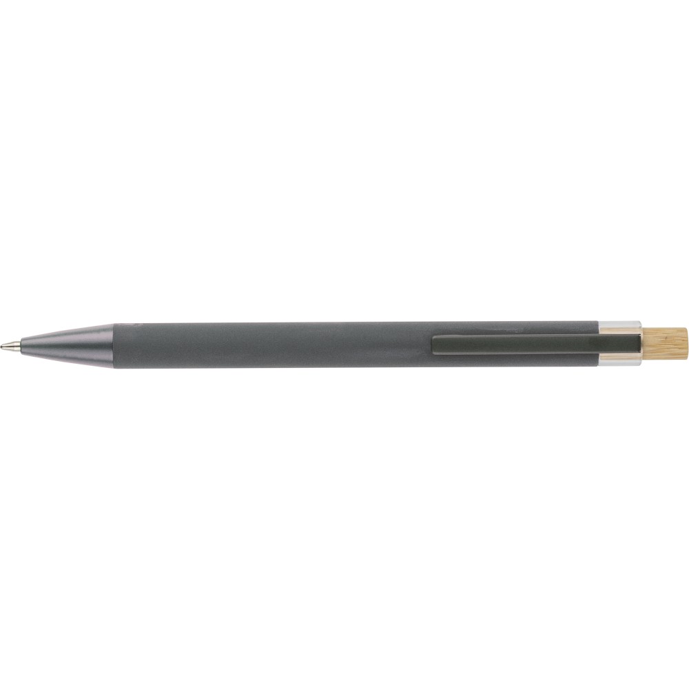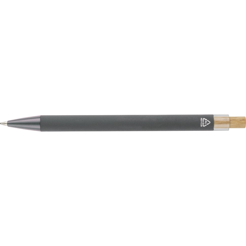 Újrahasznosított alumíniumból készült golyóstoll bambusz nyomógombbal és AS műanyag díszítéssel, fém klippel és a toll színével harmonizáló műanyag tollheggyel. A tolltesten lézergravírozott recycled (újrahasznosított) alapanyagra utaló logó található. Megközelítőleg 800 méter íráshosszúságú, kék színű tollbetéttel. Emblémázás: Gravírozás
