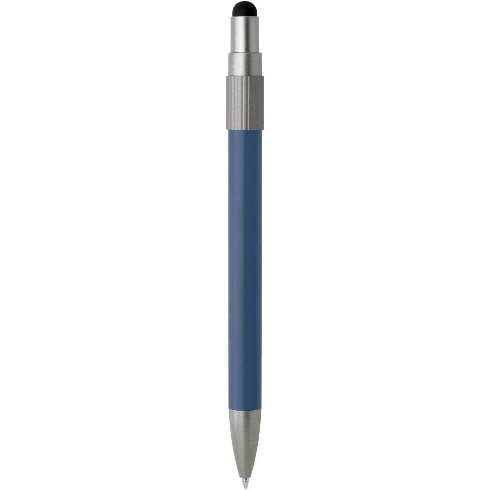 Golyóstoll érintővéggel és fidget spinnerrel, amely a praktikumot játékos dizájnnal ötvözi. A toll RCS tanúsítvánnyal rendelkező újrahasznosított alumíniumból készült, sima működésű nyomógombos szerkezettel és az érintőképernyőkhöz használható érintővéggel rendelkezik. A toll tetején a fidget spinner kiváló stresszoldó. Fekete tollbetéttel, íráshossza 1000 méter. Emblémázás: Gravírozás, Tamponnyomás