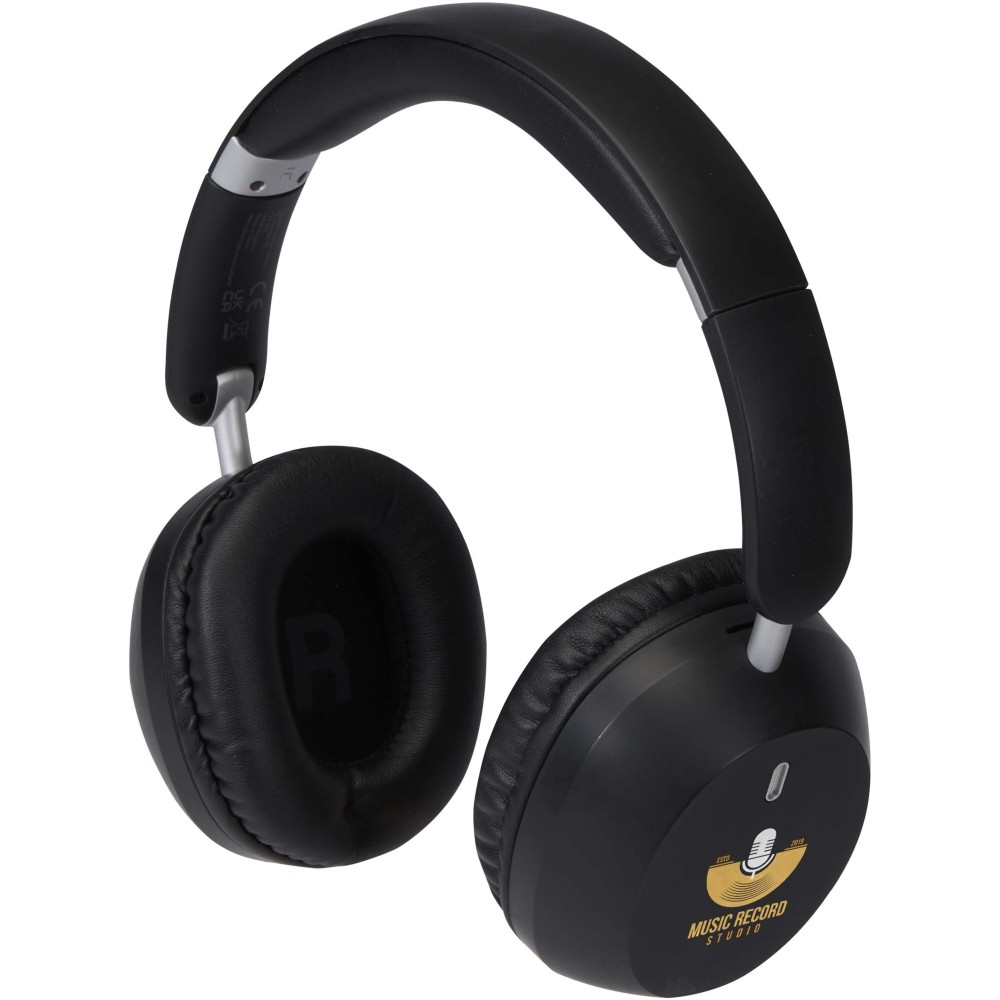 Élvezd a kiemelkedő hangélményt a Hoggar fül köré illeszkedő (over-ear) fejhallgatóval, amely újrahasznosított műanyagból készül. Az aktív zajszűrés (ANC) és a környezeti zajcsökkentés (ENC) együtt gondoskodik a tiszta, magával ragadó hangzásról, legyen szó zenéről, filmről vagy hívásról. Az elegáns részletekkel kidolgozott fejhallgató összecsukható, a mellékelt tárolózsák megkönnyíti a hordozást, és prémium díszdobozban érkezik és ajándékozásra készen áll. Emblémázás: Matricázás,