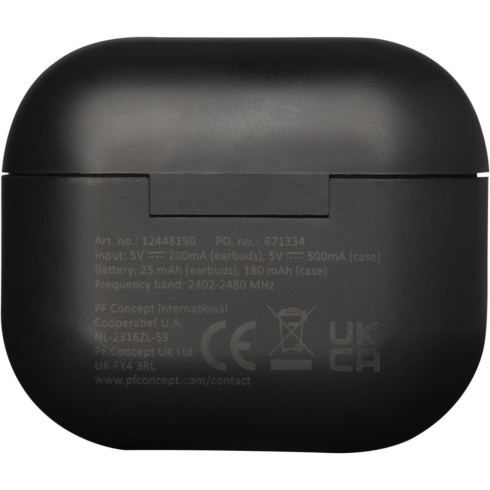 Az újrahasznosított műanyagból készült Altais TWS Bluetooth sztereó fülhallgató a kényelmet és a praktikumot ötvözi egy kompakt töltőtokban. A Bluetooth 6.0 technológia stabil kapcsolatot biztosít, a készülék pedig akár 4 órányi beszélgetési vagy zenelejátszási időt kínál, miközben a teljes újratöltés mindössze 1-1,5 órát vesz igénybe. A készlet tartalmaz egy 30 cm-es USB-A - Type-C töltőkábelt is. Emblémázás: Tamponnyomás, UV nyomtatás