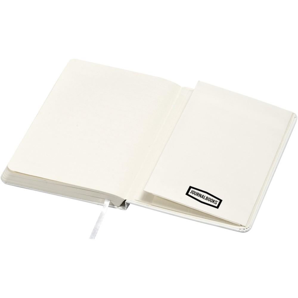 Ez az exkluzív kivitelű, klasszikus stílusú, keményfedeles, gumiszalaggal záródó, 80 lapos (80 g/m2), vonalas zsebkönyv (A5 méret) ideális jegyzetek készítéséhez és megosztásához. A hátoldalán kihúzható zsebbel a kisebb jegyzetek tárolásához. Journalbooks díszdobozban. Emblémázás: Szitanyomás, Tamponnyomás, UV nyomtatás