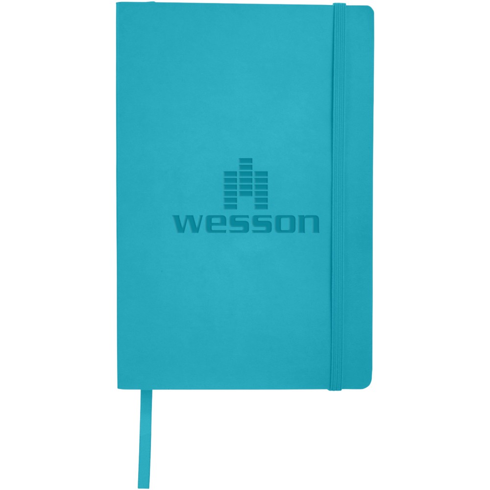 Puha fedelű jegyzetfüzet rugalmas gumizáródással, könyvjelző szalaggal, hátul zsebekkel iratok számára. 80 (80 g/m2) vonalas lap. Emblémázás: Szitanyomás, Tamponnyomás, UV nyomtatás