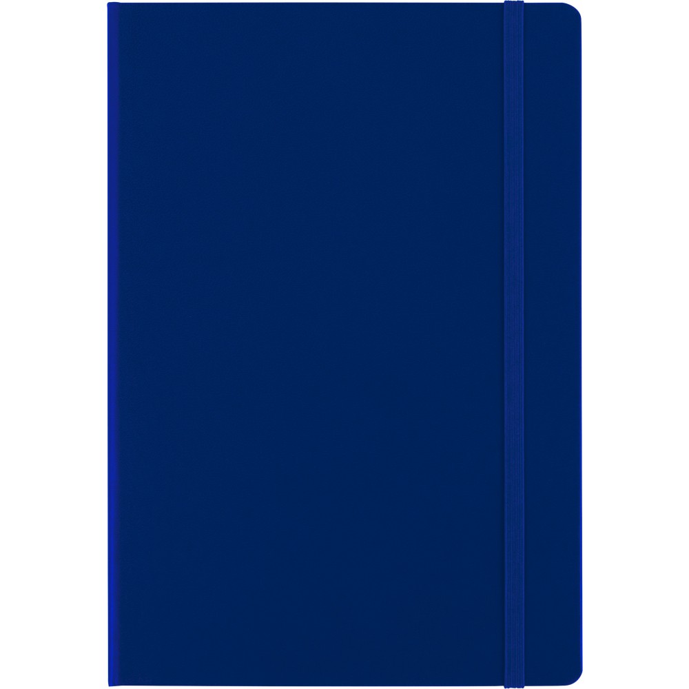 A5-ös füzet gumis záródással, 128 vonalas, dátumjelzéses lappal és papírzsebbel a hátsó, belső borítón. A külső hátsó borítón IMPRESSION logó található. PVC, 80 g papír. Emblémázás: Tamponnyomás, UV nyomtatás