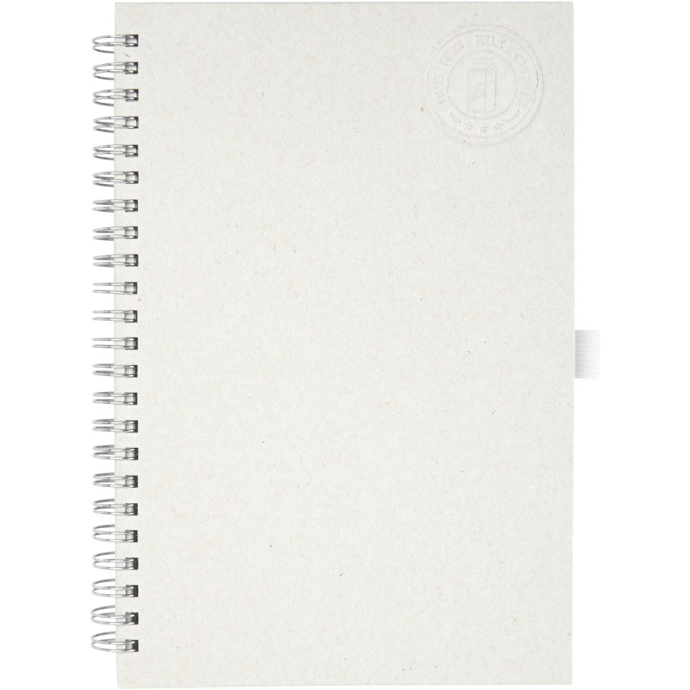 A5-ös méretű spirálfüzet 70 db 80 g/m2-es vonalas lappal, újrahasznosított tejesdobozokból (70%). A használt tejes kartondobozokat összegyűjtik, válogatják, feldolgozzák és papírrá alakítják, valóban hasznossá alakítva a hulladékot. Emblémázás: Tamponnyomás
