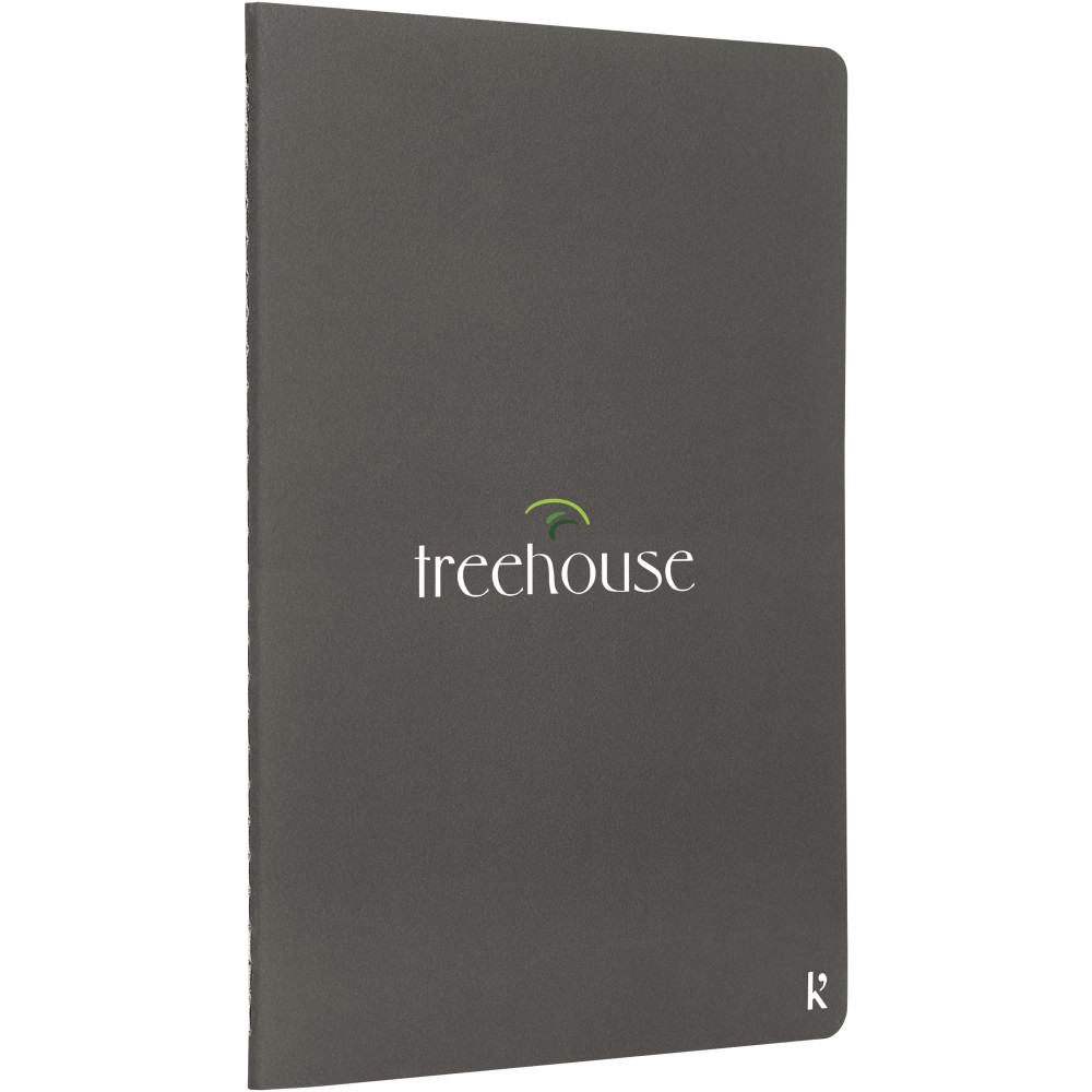 Kiváló minőségű és fenntartható kőpapírból készült 2 db famentes, A5-ös füzet. Az egyik vonalas, a másikban üres lapokkal. Könnyen eltávolítható perforált lapok, egyedi vízálló borítás, a jegyzetek tárolására szolgáló hátsó zseb, fűzött (színben illeszkedő) és lekerekített sarkokkal rendelkezik. Emblémázás: UV nyomtatás