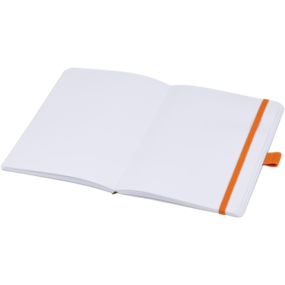 Jegyzetfüzet újrahasznosított vonalas lapokkal (70 g/m2), lekerekített sarkokkal, színes gumi záródással és az 107384-es tollszínhez illő tollhurokkal. Emblémázás: Szitanyomás, Tamponnyomás