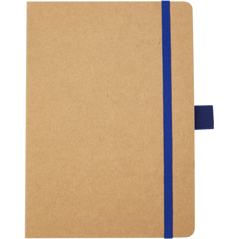 Jegyzetfüzet újrahasznosított vonalas lapokkal (70 g/m2), lekerekített sarkokkal, színes gumi záródással és az 107384-es tollszínhez illő tollhurokkal. Emblémázás: Szitanyomás, Tamponnyomás