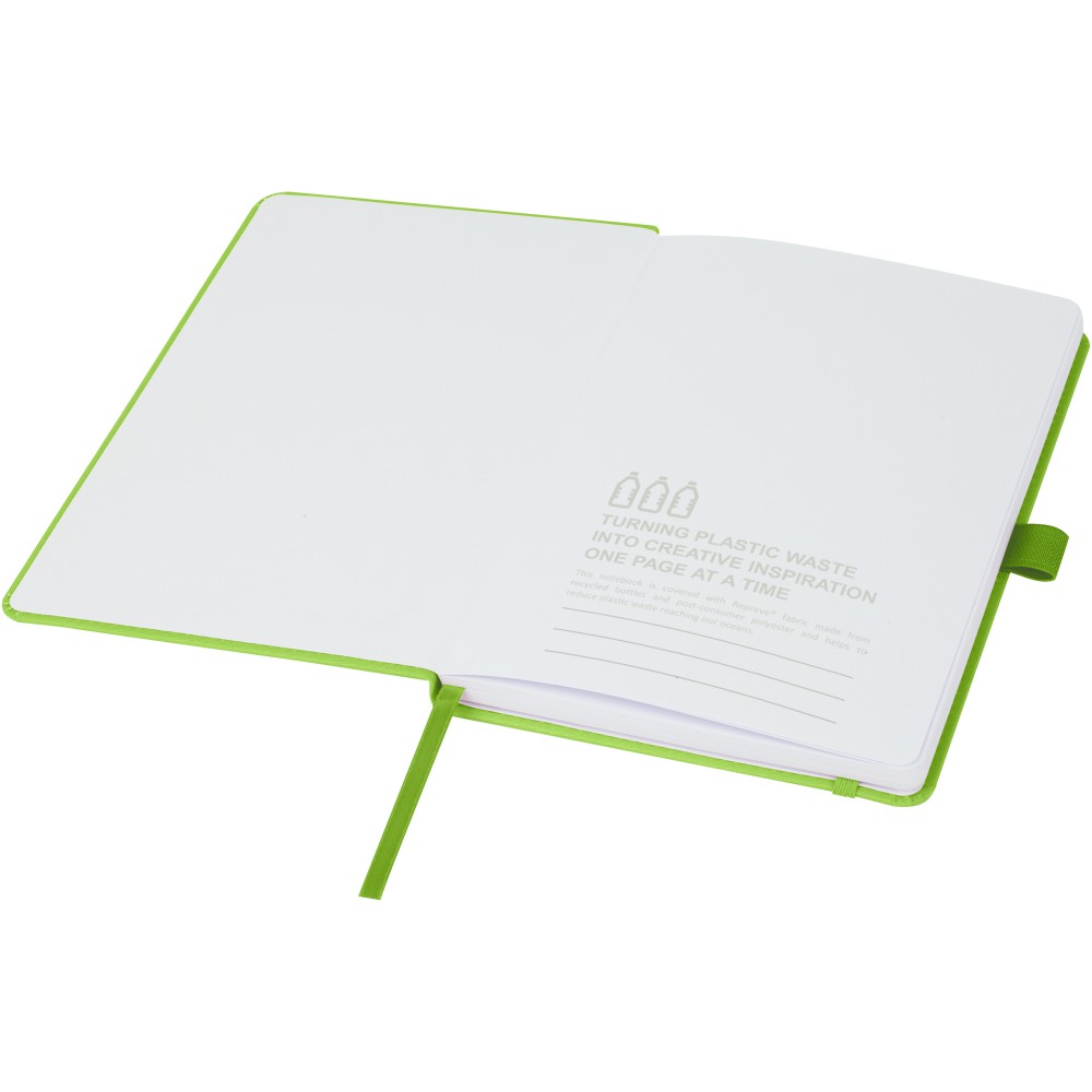 A Thalaasa jegyzetfüzet poliészter borítója a tengerparti területekről begyűjtött, óceánba került műanyagból készült. Ez fenntarthatóbb választássá teszi ezt a füzetet, mivel segít csökkenteni a műanyaghulladékot. 80 vonalas lapot tartalmaz 80 g/m2 újrahasznosított papírból, tollhurokkal, gumis záródással, könyvjelzővel és harmonikazsebbel. Emblémázás: Szitanyomás, UV nyomtatás