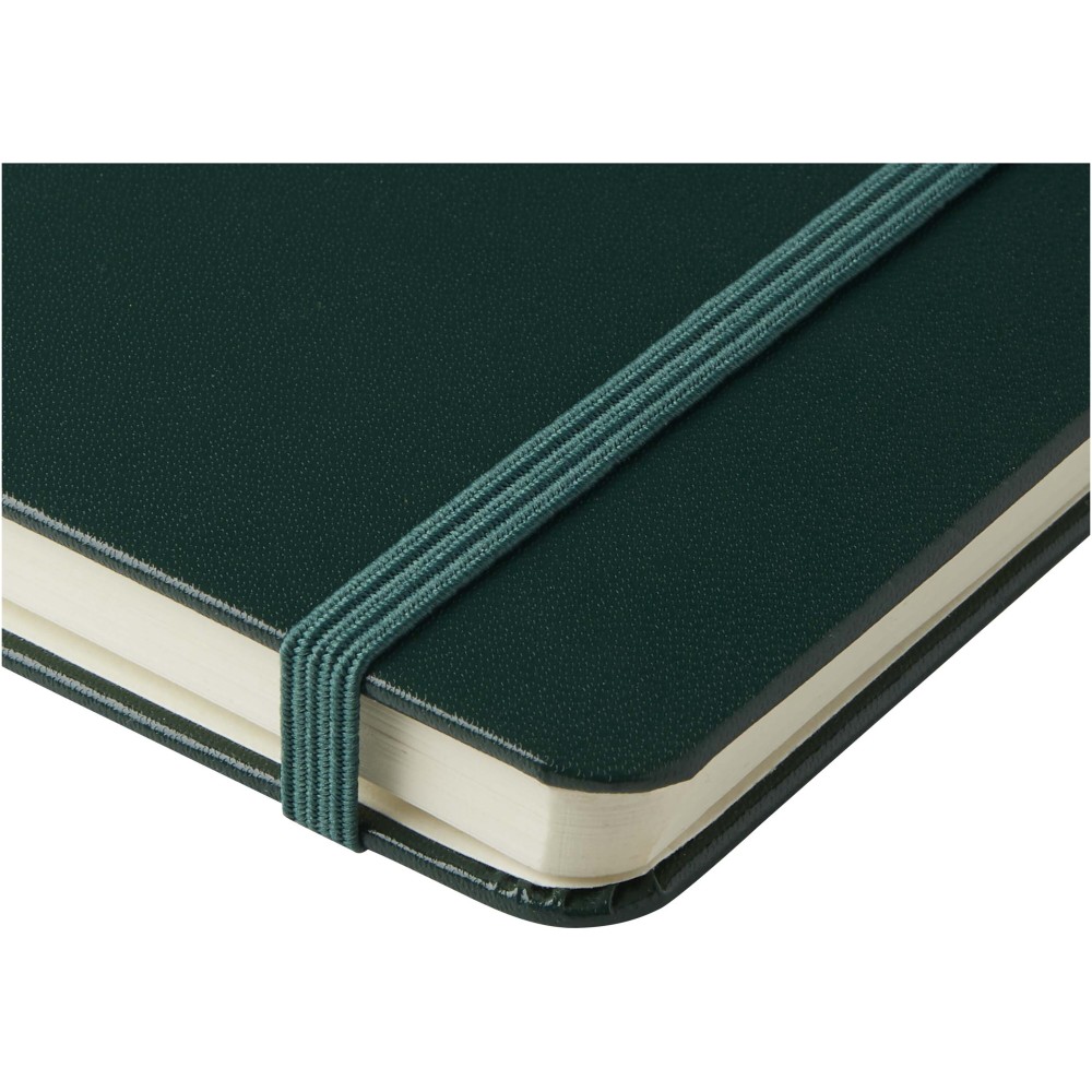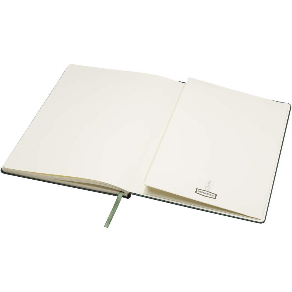 Ez az exkluzív kivitelű, klasszikus stílusú, keményfedeles, gumiszalaggal záródó, 80 lapos (80 g/m2), vonalas jegyzetfüzet (A4 méret) ideális jegyzetek készítéséhez és megosztásához. A hátoldalán kihúzható zsebbel a kisebb jegyzetek tárolásához. Journalbooks díszdobozban. Emblémázás: Tamponnyomás, UV nyomtatás