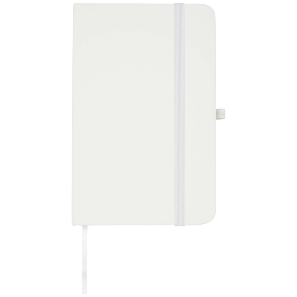 A Spectrum Plus A6 keményfedeles jegyzetfüzet lekerekített sarkokkal nemcsak az irodai mindennapok elengedhetetlen kelléke, hanem remek lehetőség márkád népszerűsítésére is. A jegyzetfüzet puha tapintású borítóval rendelkezik és 80 vonalas, krémszínű, 70 g/m2-es lapból áll, amely tökéletes gyors ötletek vagy hosszabb jegyzetek rögzítésére. A jegyzetfüzet tolltartó hurokkal, gumiszalagos záródással, könyvjelzővel és harmonikazsebbel van ellátva. Emblémázás: Tamponnyomás, UV nyomtatás