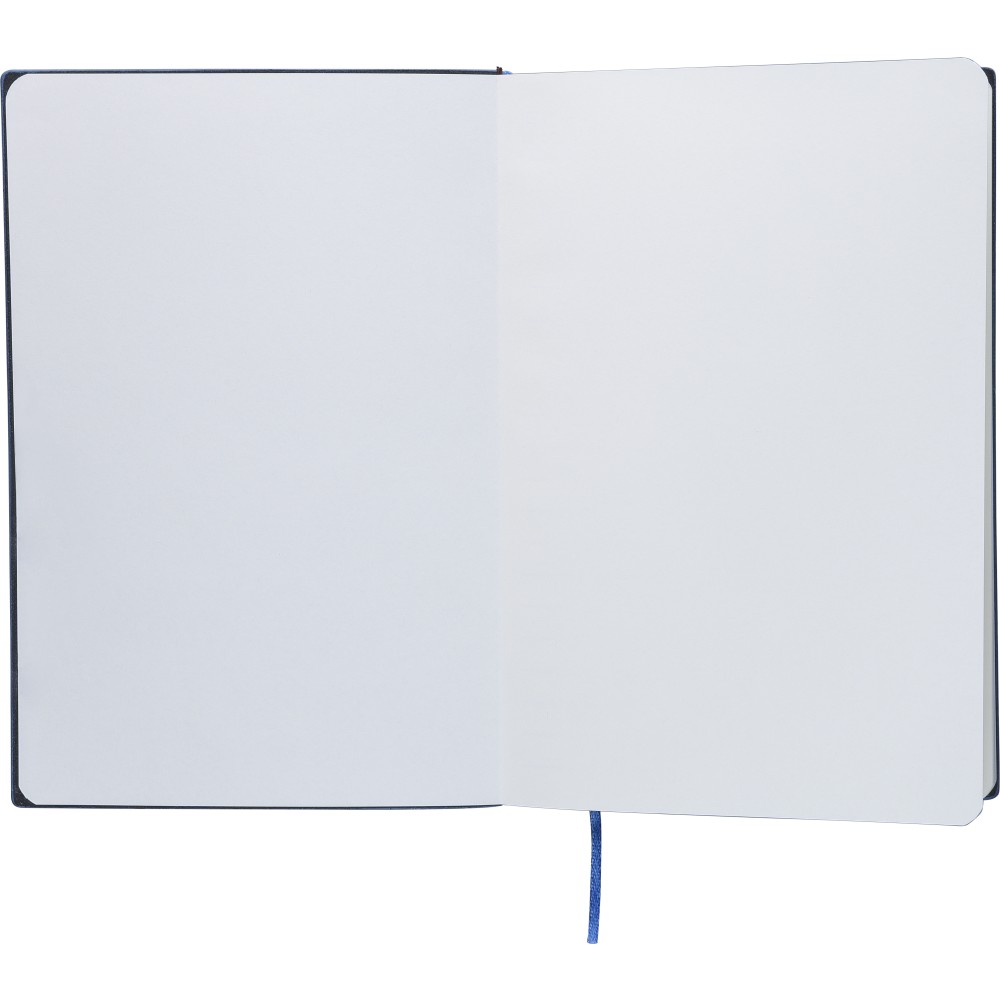 Újrahasznosított PU jegyzetfüzet, kb. A5-ös méretű, 100 lapos. Kemény borítóval és kordbársony hatású bevonattal az elülső és a hátlap felső részén. Tartalmaz egy szalagos könyvjelzőt és 80 g/m2-es vonalas lapokat. A hátoldalon dombornyomott újrahasznosított logóval. Emblémázás: Szitanyomás