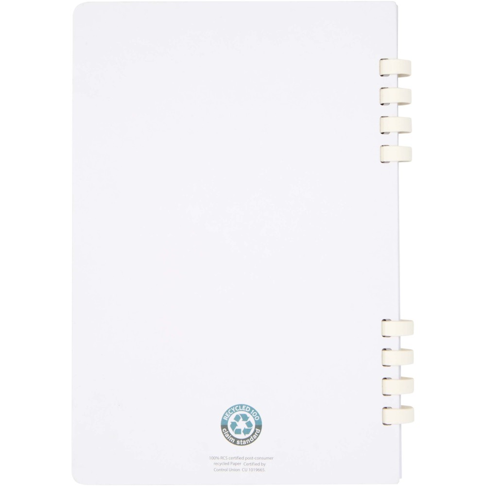 A Fil A5 méretű, keményfedeles spirálfüzet 60 vonalas lapot tartalmaz, amelyek 70 g/m2 súlyú, RCS tanúsítvánnyal rendelkező újrahasznosított papírból készültek. A teljes mértékben újrahasznosított anyagokból előállított termék praktikus választás, mivel használat után egyszerűen és környezettudatosan újrahasznosítható. Emblémázás: Szitanyomás