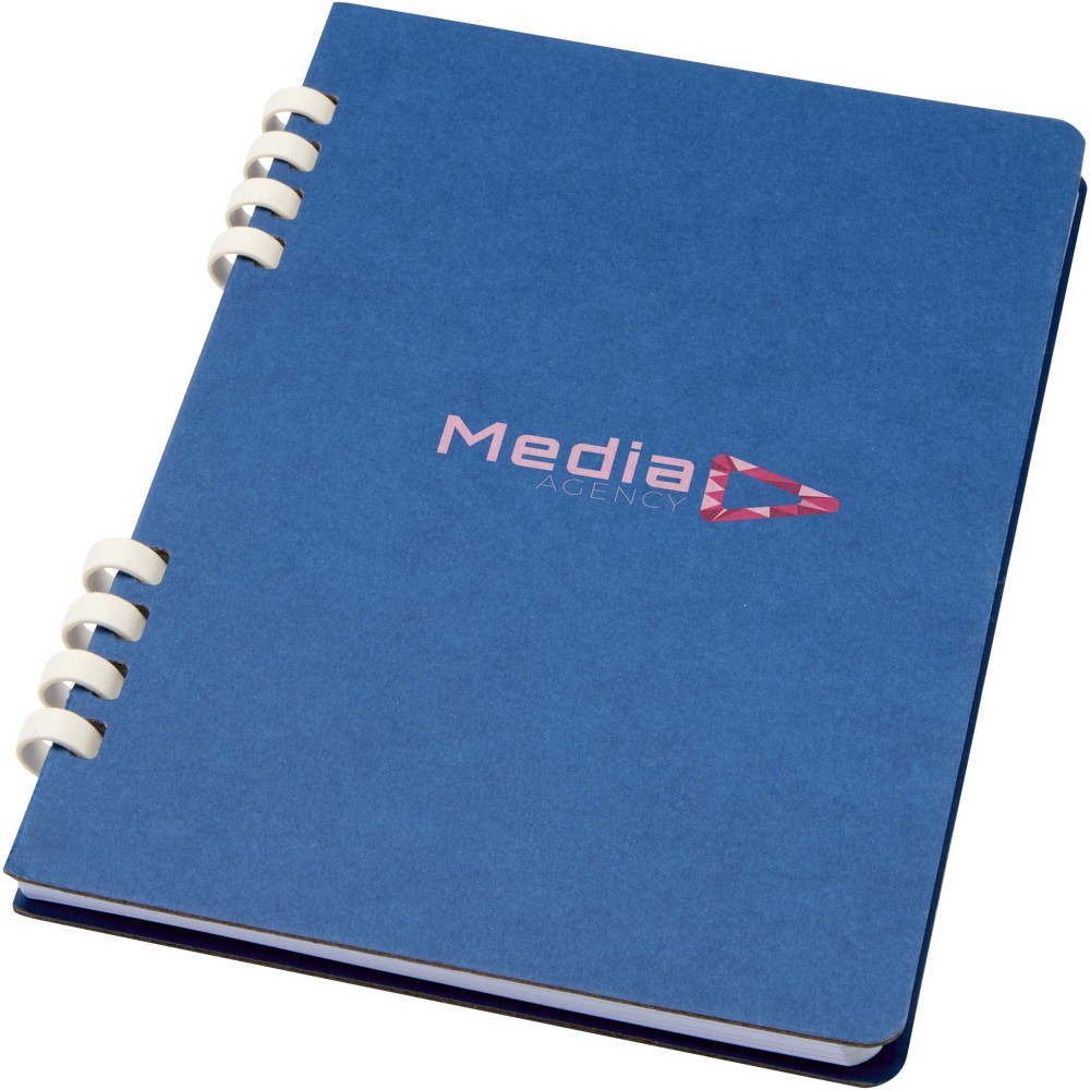 A Fil A5 méretű, keményfedeles spirálfüzet 60 vonalas lapot tartalmaz, amelyek 70 g/m2 súlyú, RCS tanúsítvánnyal rendelkező újrahasznosított papírból készültek. A teljes mértékben újrahasznosított anyagokból előállított termék praktikus választás, mivel használat után egyszerűen és környezettudatosan újrahasznosítható. Emblémázás: Szitanyomás
