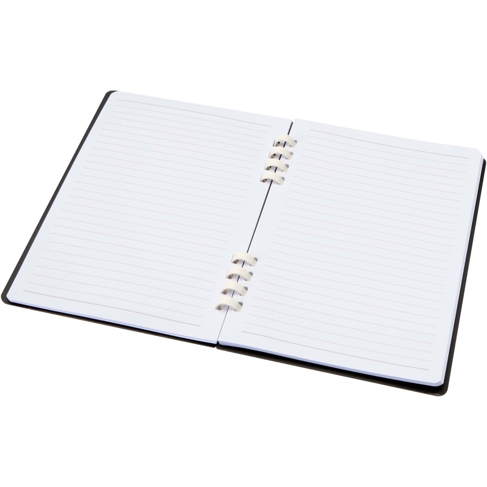 A Fil A5 méretű, keményfedeles spirálfüzet 60 vonalas lapot tartalmaz, amelyek 70 g/m2 súlyú, RCS tanúsítvánnyal rendelkező újrahasznosított papírból készültek. A teljes mértékben újrahasznosított anyagokból előállított termék praktikus választás, mivel használat után egyszerűen és környezettudatosan újrahasznosítható. Emblémázás: Szitanyomás